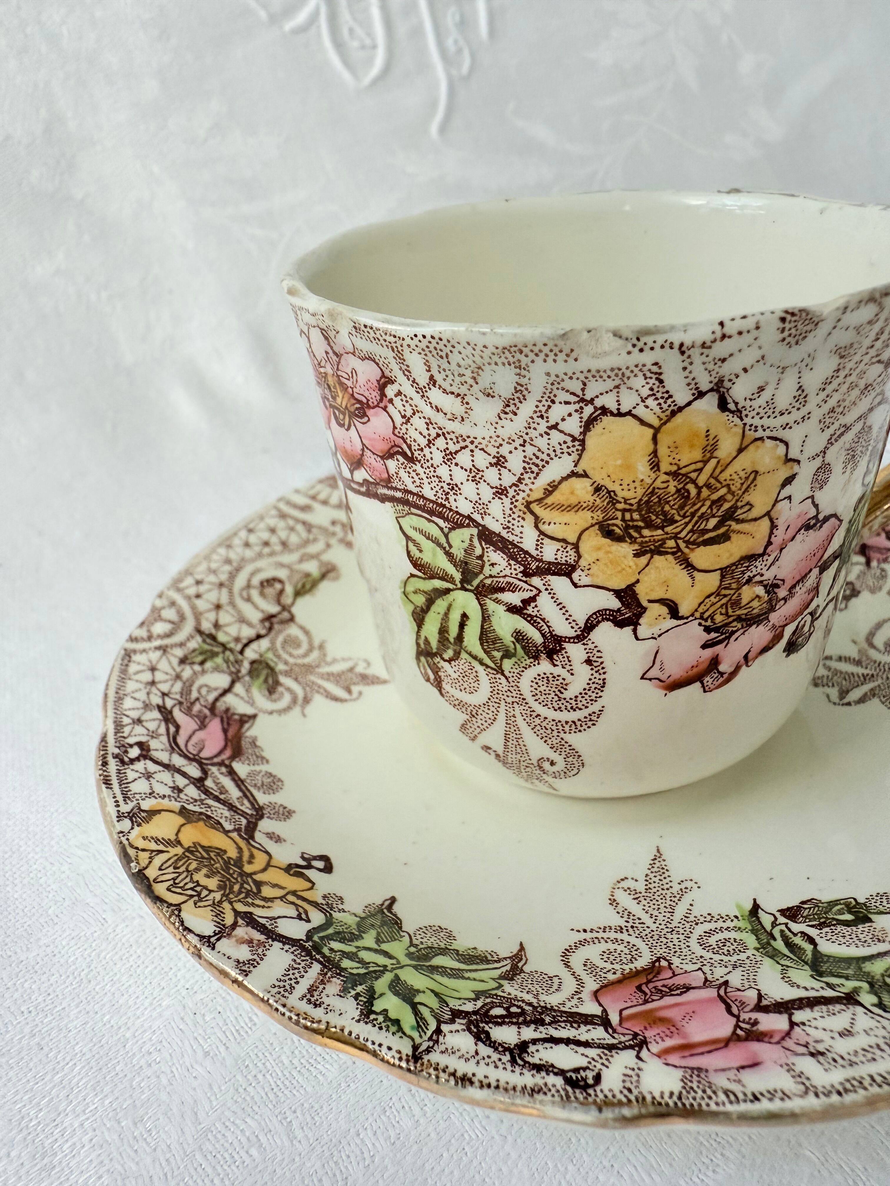 ②Lunéville Guipureリュネヴィル ギュピュール フランスアンティーク カップ&ソーサー