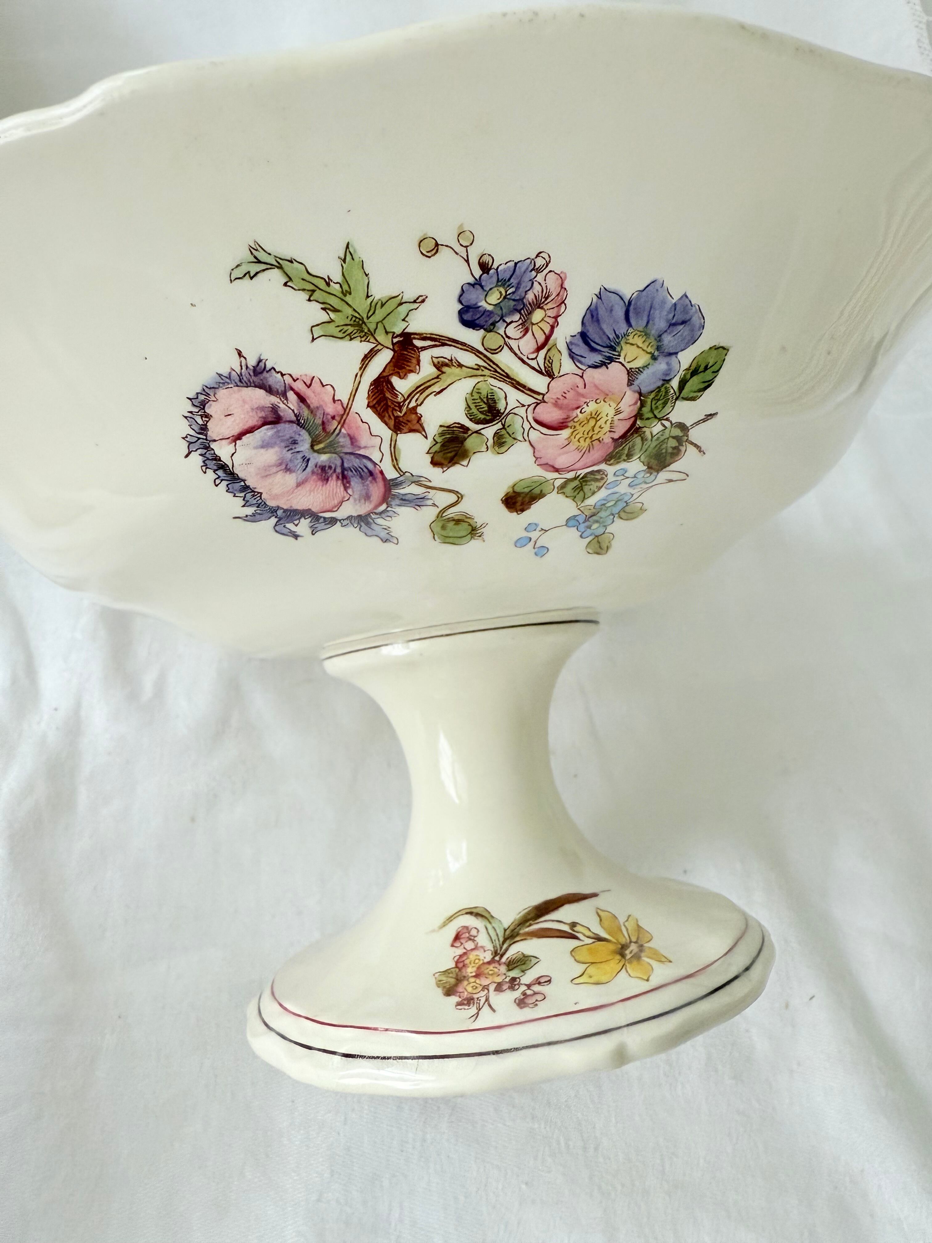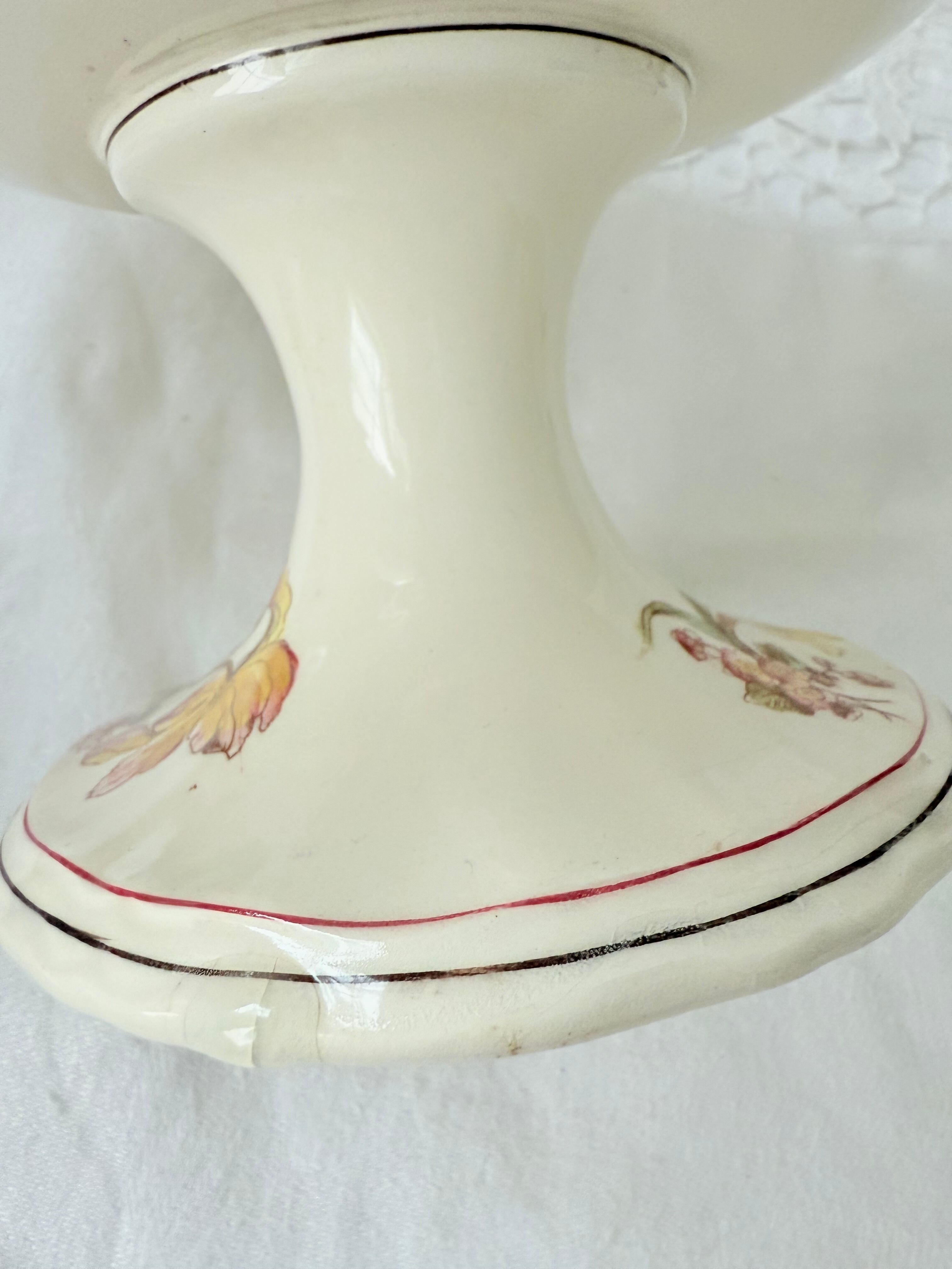 上部受け皿の部分、手書きで描かれたお花も綺麗に残っています。フチに窯傷や削げ、チップが数カ所あります。