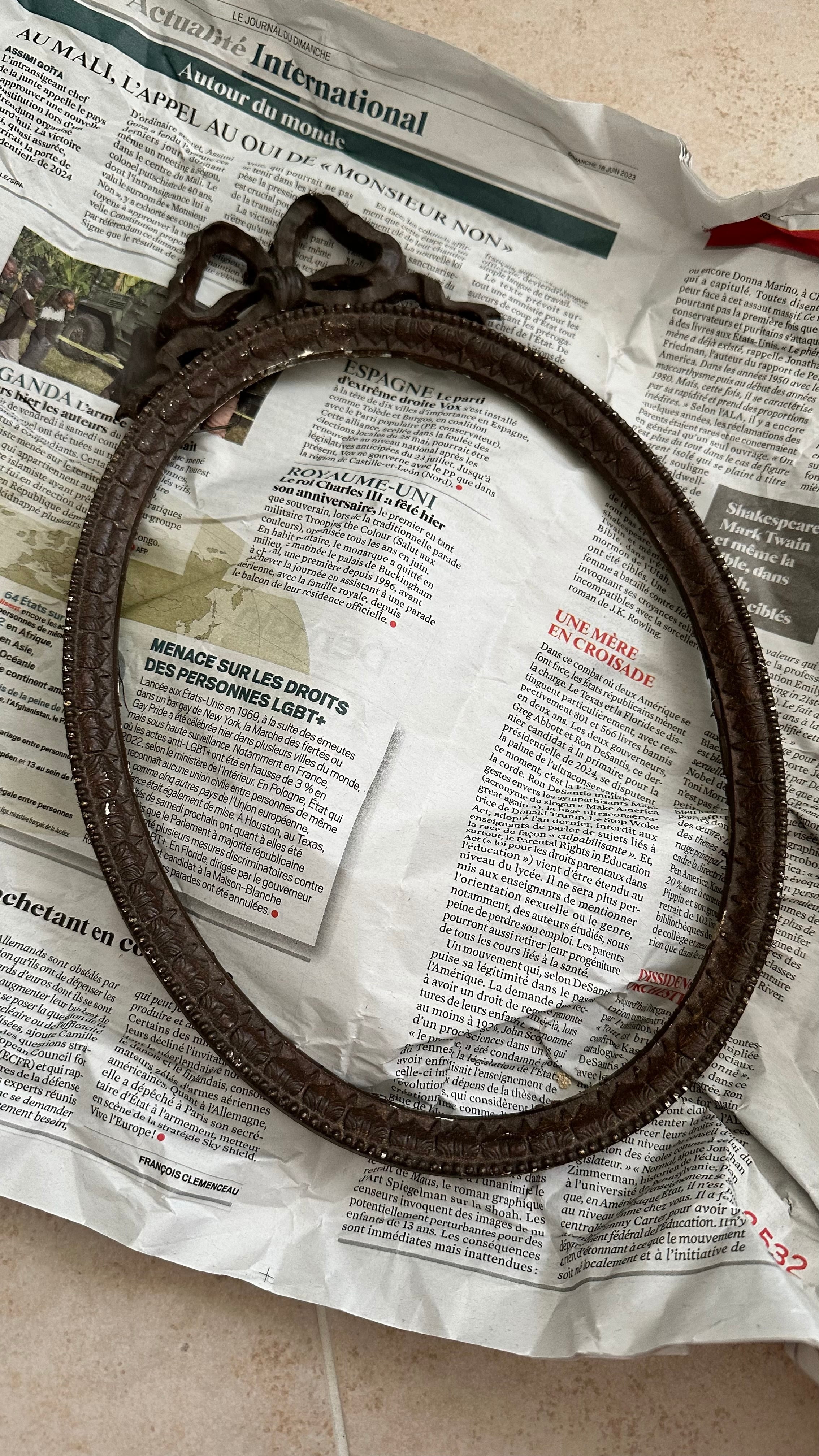 150年以上のものでフレームのみですが、美しいデザインだったためフランスより持ち帰りました。お迎えくださる方の使い方によって様々な用途ができそうです。