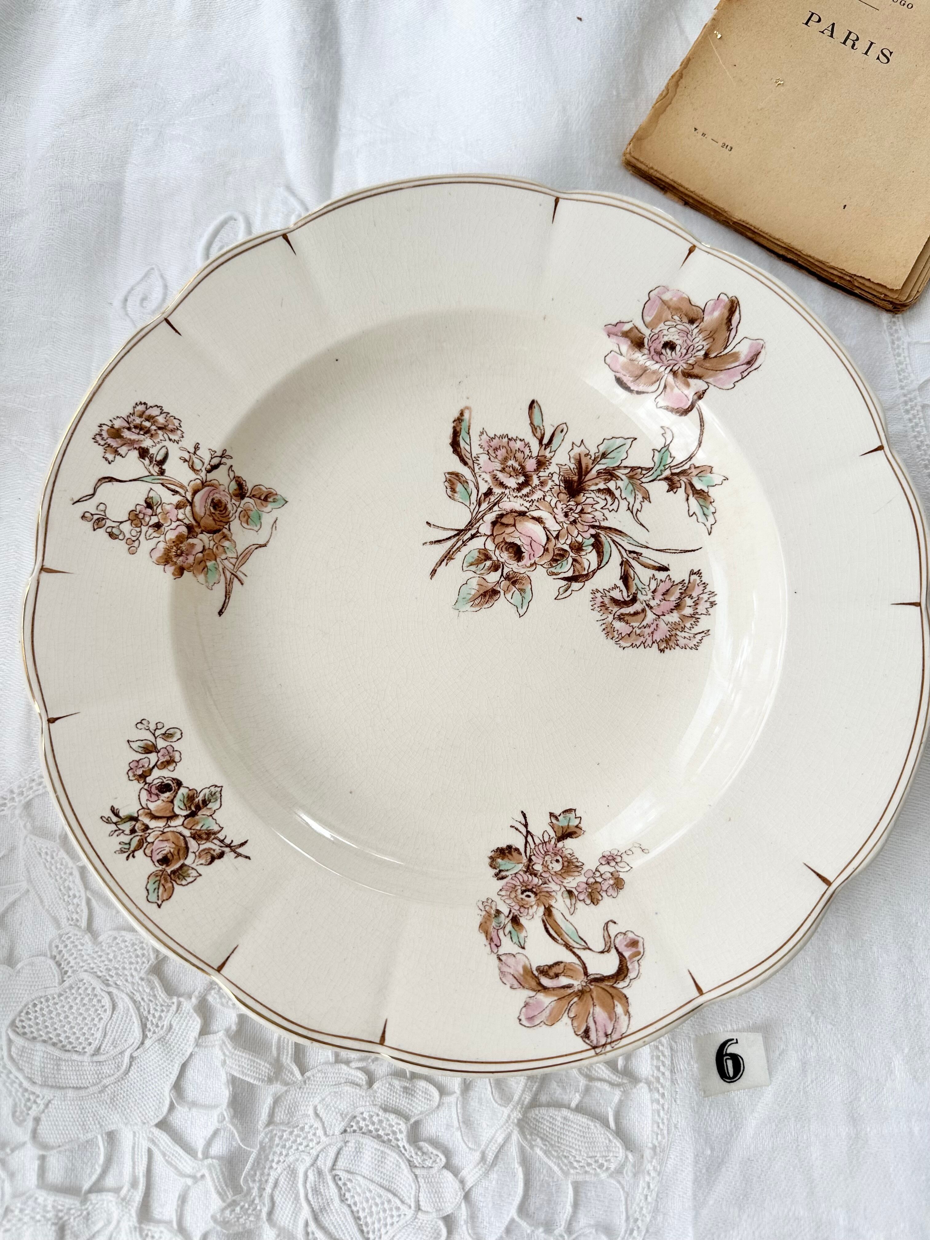 美しい花柄、花リムの心踊るアンティークプレートです。それぞれ少しずつ柄が異なり大変繊細にデザインされていたことが分かります。
