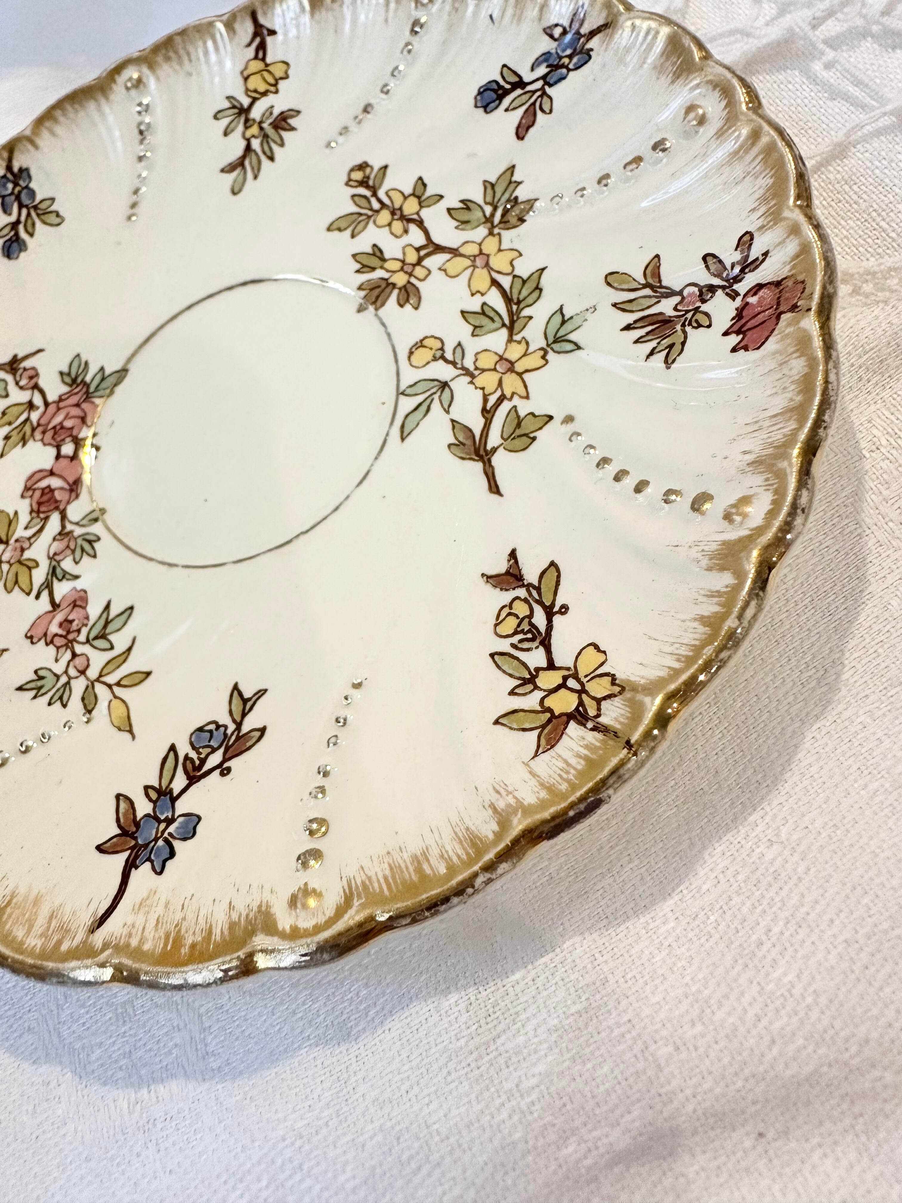 他のソーサーと重ねていたのか、裏面フチが全体的にぐるっと1周近く削げています。